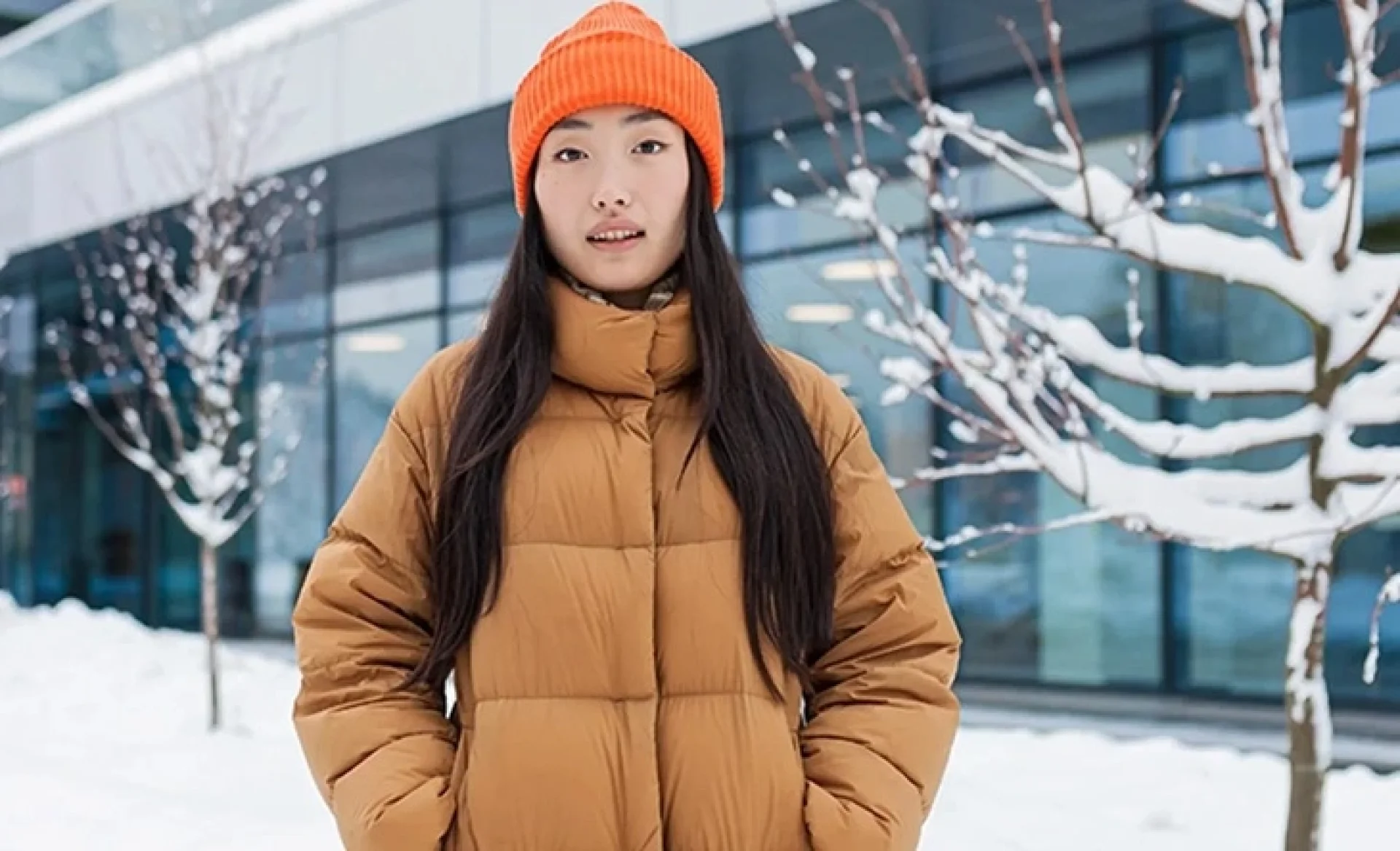 ใส่เสื้อผ้าโทนอ่อนตัดกับหิมะ